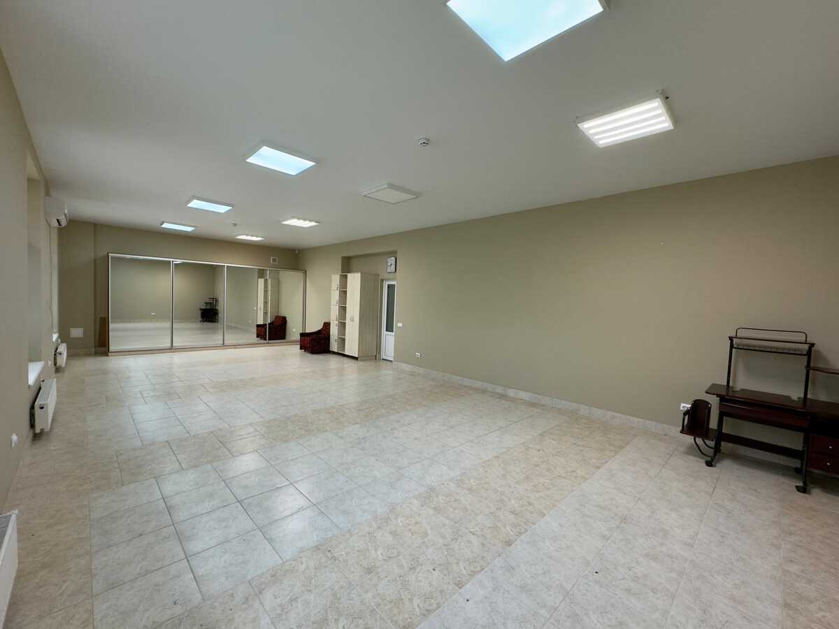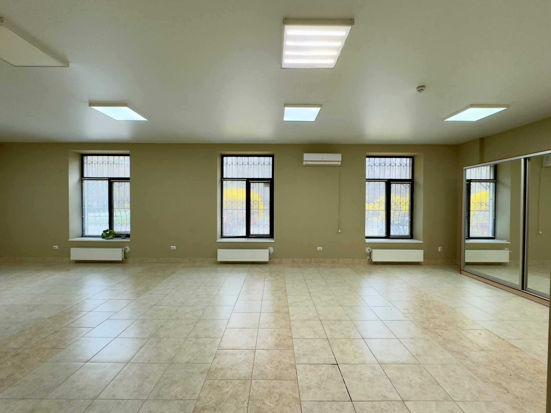 Велике приміщення з трьома панорамними вікнами — ідеальне для open space офісу, тренінг-центру або шоуруму. Простір наповнений природним світлом, облаштований кондиціонером для комфорту в будь-яку пору року. Встановлена велика дзеркальна шафа, яка додає функціональності та візуально розширює кімнату. Простір готовий до використання без додаткових витрат на ремонт.
